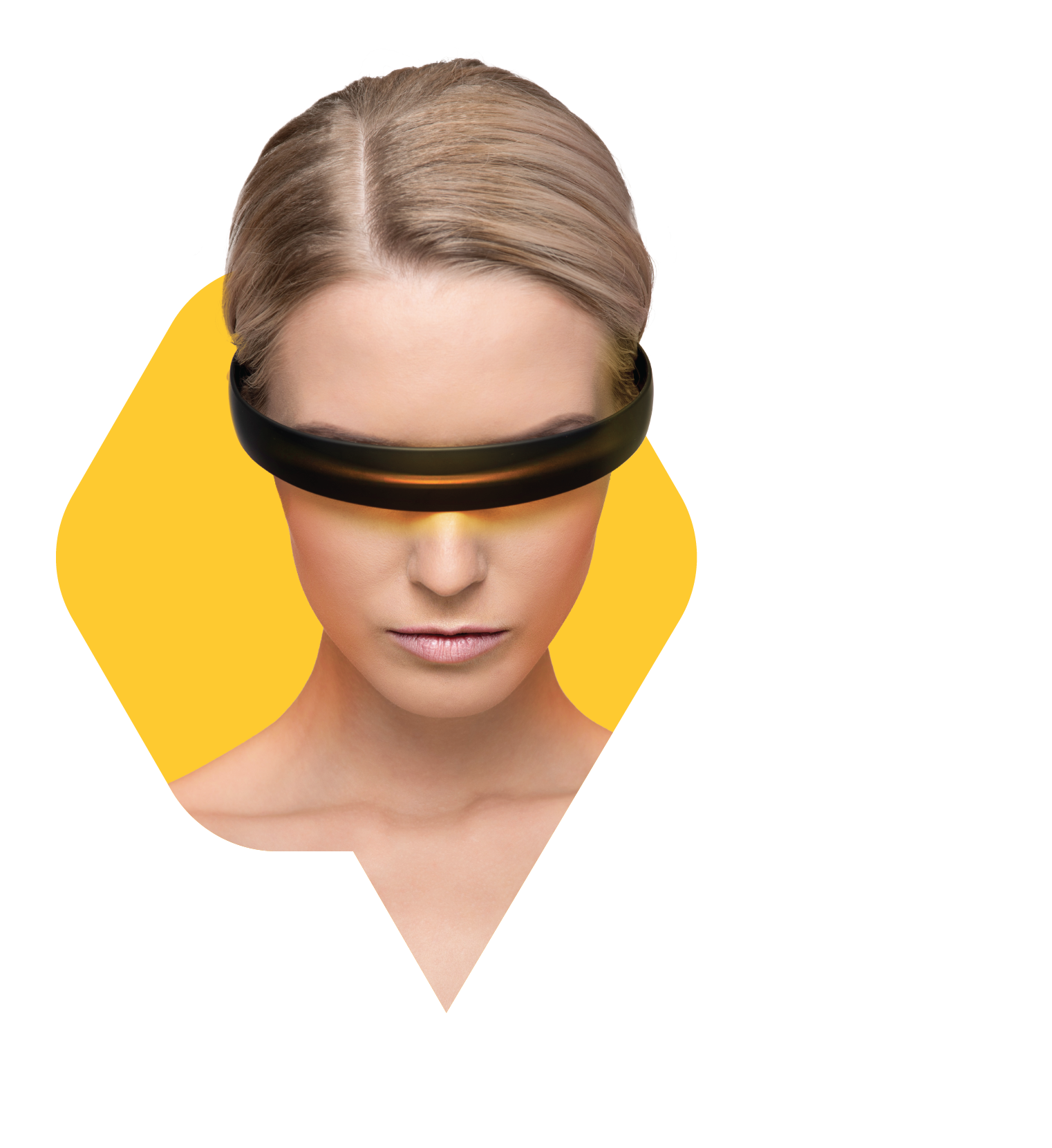 We developed a recognizable bright color scheme. The two main colors, space blue and honey colors are combined with white one to give contrast variations.