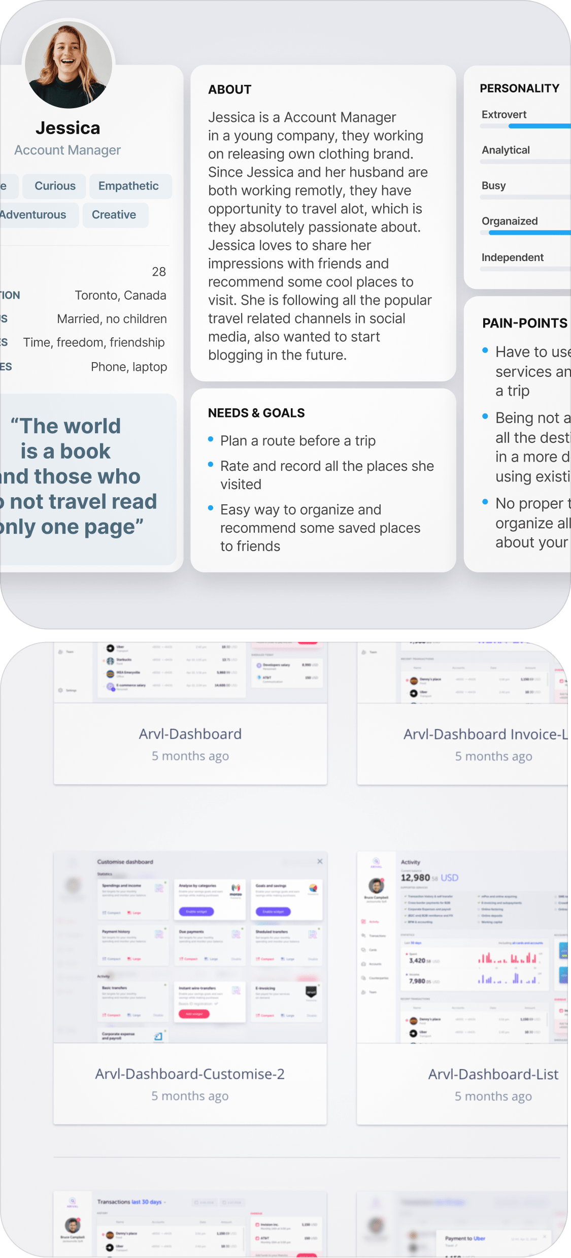 Interviews, competitive analysis, study of business models, user scenarios, and tasks. - Designing UX